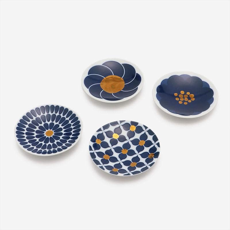 インテリアショップ「アクタス」で取り扱いのあるブランド、 KIHARAのBotanicalシリーズの豆皿。藍色の花弁モチーフにゴールド使いがエレガントです。