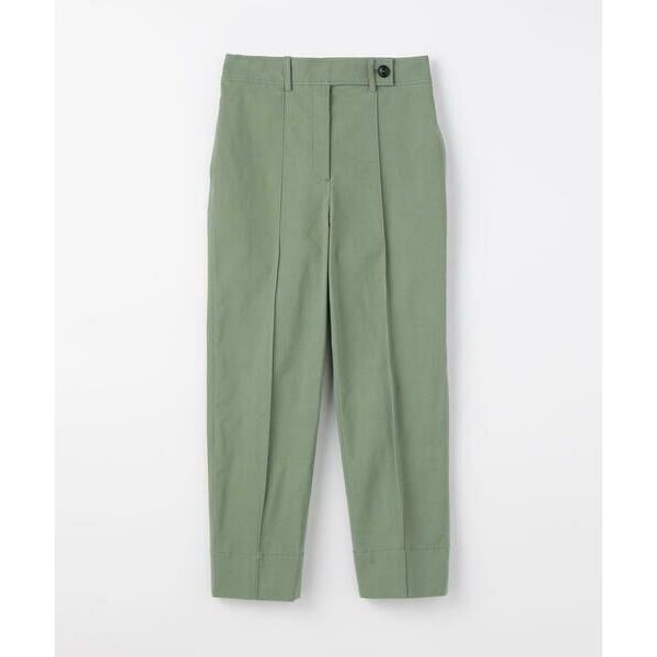 イタリア産ハイストレッチ素材を使った着心地抜群のグリーンパンツ。ヒールもフラットシューズも似合う丈感が◎です。