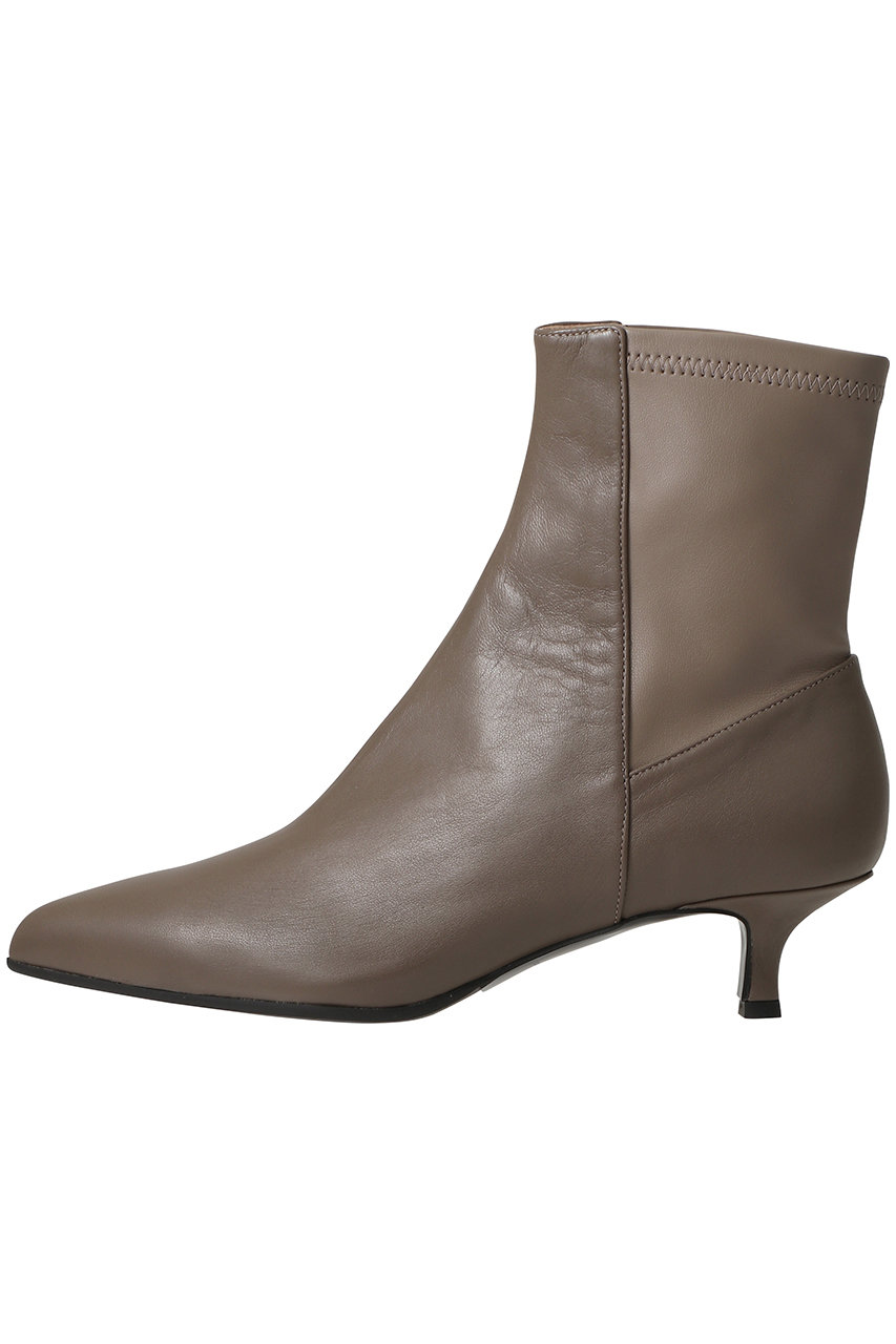 レザーとストレッチのコンビが履き心地抜群のショートブーツ。ポインテッドトゥ&キトゥンヒールで美脚に。