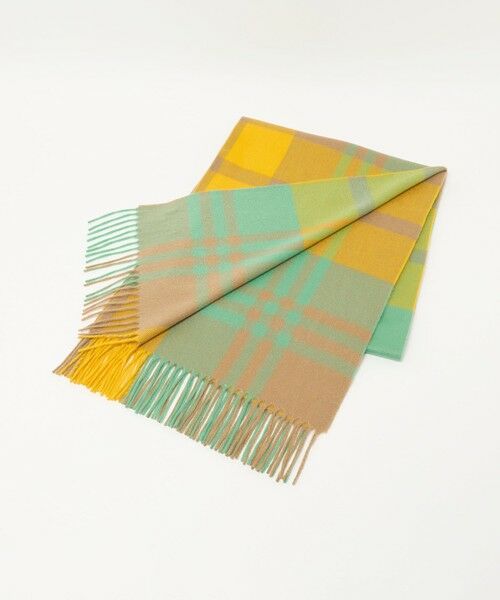 鮮やかなブルー×グリーンのチェックが新鮮なカシミヤストール。トラディショナルなタータンチェックもカラーリングでぐっと雰囲気が変わりますね。