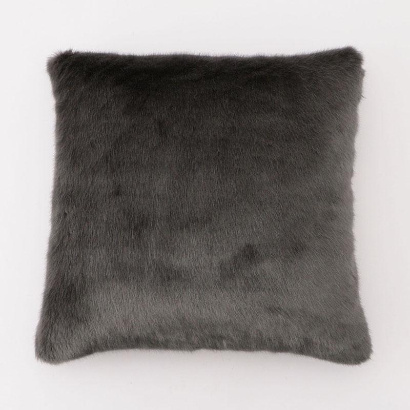 リアルファーと遜色のないふわふわで滑らかな肌触りのエコファーのクッションカバー。シックなチャコールグレーとエレガントなサンドの2色展開。
