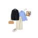 レーススカートが華やかなパステルブルーのワントーンコーデ。黒い小物でコーデを引き締め。