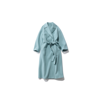 こちらも定番のダブルブレストロングコート。長めのIラインシルエットですらりとした印象に。