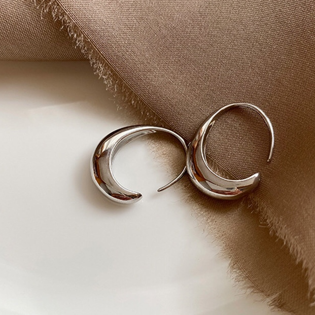白シャツコーデをキリリと引き締めるシルバーピアス。大ぶりのCドロップデザインで存在感大。