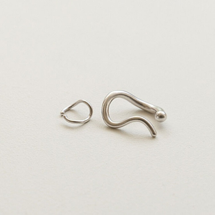 太さも大きさも異なるねじりニュアンスイヤーカフ。単体でもコンビでも、クールなシルバーアクセサリー。