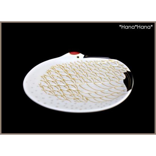 ふっくらとした鶴が可愛い豆皿は、新春を寿ぐ席にぴったりです。白×黒に金と赤が映えるモダンなデザインです。