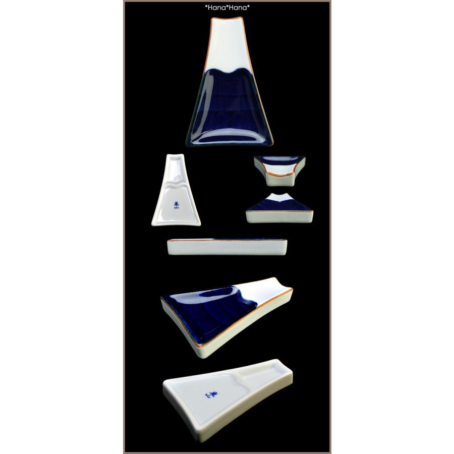 縁起の良い富士山の豆皿は有田焼。白×ブルーのコントラストや縦長のデザインが目を惹く一皿です。
