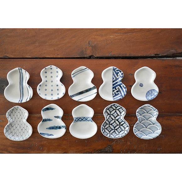 藍染模様が美しい、ころんとしたまあるい形の箸置き。福の文字や鞠の模様がお正月の食卓にぴったりです。