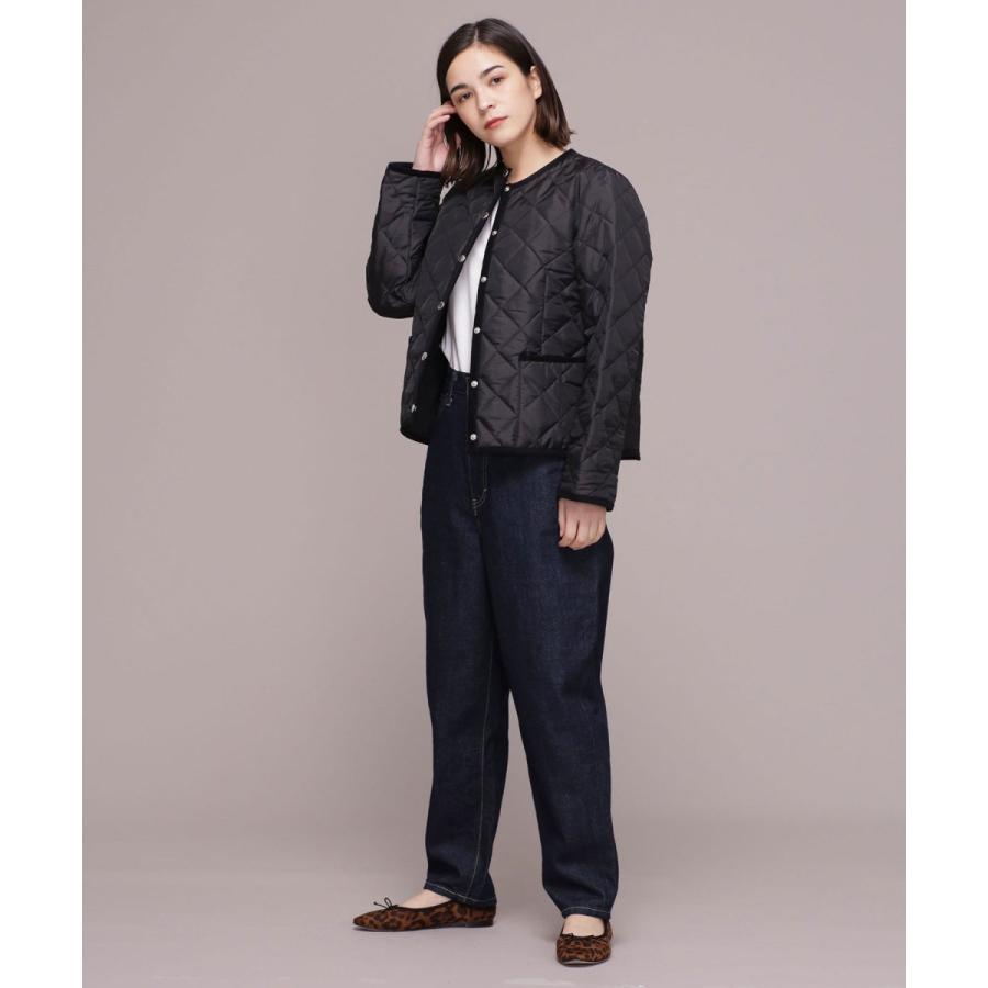 ノーカラー&ショート丈のすっきりとしたデザインのキルティングジャケット。