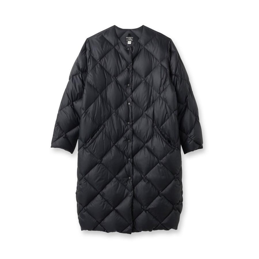 ノーカラーで長めの丈が今季らしい1着。トレンドの着こなしが楽しめるダウンコートです。