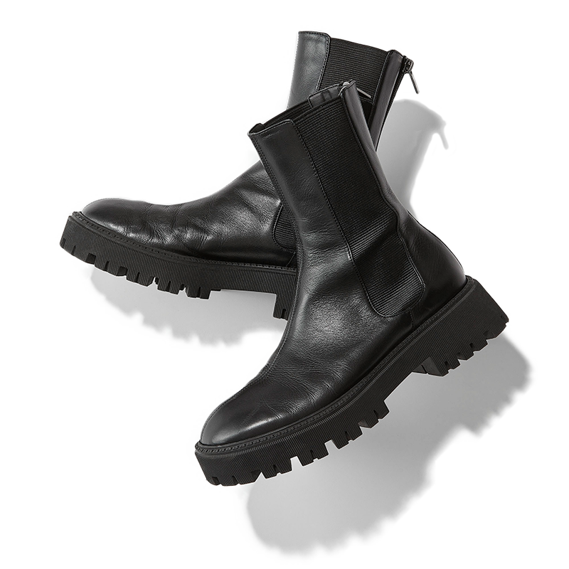 色や素材で濃淡をつけること。色も素材も全身同じにしてしまうとのっぺりとした印象になってしまうので注意。