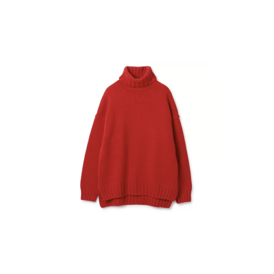 赤いハイネックニット
