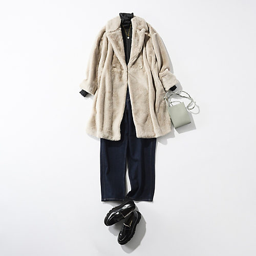 デニム×エコファーロングコート