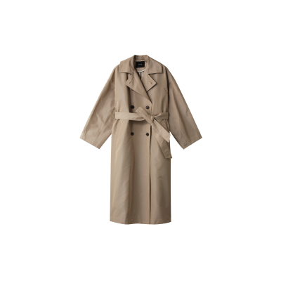 トレンドのゆったりとしたシルエットのトレンチコートなら、インナーダウンのレイヤードも可能。3シーズン着回せますね。