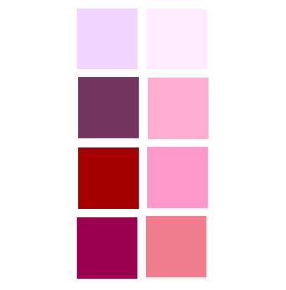 パーソナルカラー、ブルベに合うピンクはブルー味のある色。白に近いようなベビーピンクをはじめ、フューシャピンクやボルドー寄りの色が得意です。