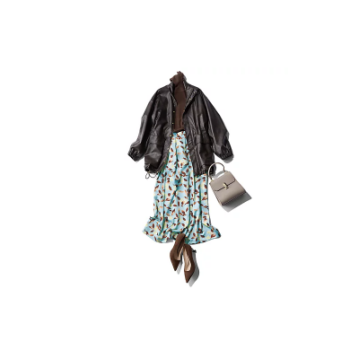 花柄には無地のアイテムを合わせること。花柄アイテムを主役にすることで、すっきりとした着こなしになりますよ。