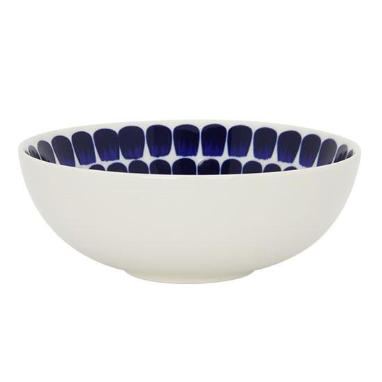 白地に藍色の縁取りが北欧テイストのトゥオキオ。和食とも相性が良いのも魅力のひとつ。和洋中、どんなテイストの料理にも似合うオールラウンダーです。