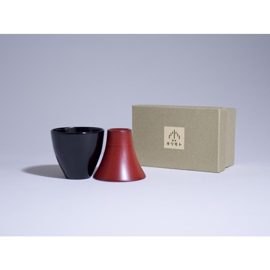 輪島キリモトのぐい飲み、黒の「あなた」と赤の「わたし」のセット。柔らかくしっとりとした口当たりのぐい飲みは自宅用としても、お酒好きな方へのギフトとしても◎です。