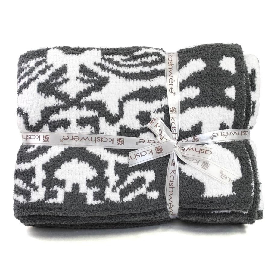 ダークカラーにダマスク柄がシックなカシウェアのブランケット。プライベート用としてもギフトとしても喜ばれるブランケットです。