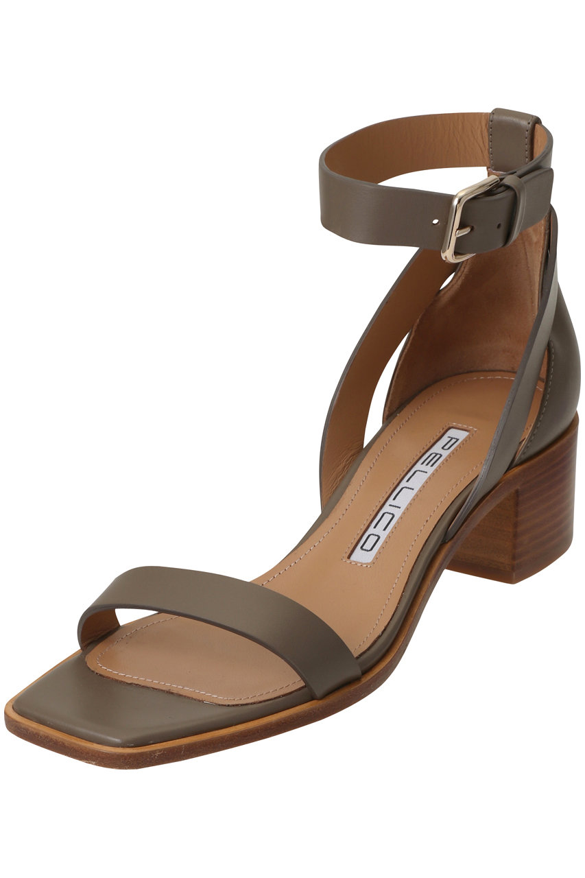 ホールド感のあるアンクルストラップに安定感のあるブロックヒールが端正な印象のサンダル。肌馴染みの良い色、トープ。
