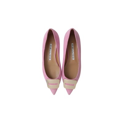 ヘルシーなカッティング、エッジィなスクエアトゥが美しいシンプルなオープントウパンプス。